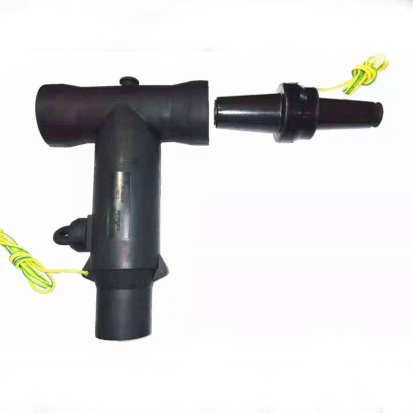 R-303 T-II 型接头适用于10KV、630A 电气系统,主要用于环网柜和电缆分支箱的主网和分支系统,其尾部可连接200A肘形电缆插头,增加出线路数,可安装美式避雷器,保护电气设备,在对设备和电缆检修时确保安全,也可安装接地电缆插头。